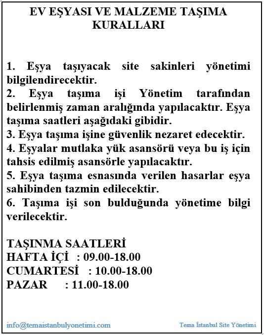 TEMA İSTANBUL EV EŞYASI VE MALZEME TAŞIMA KURALLARI